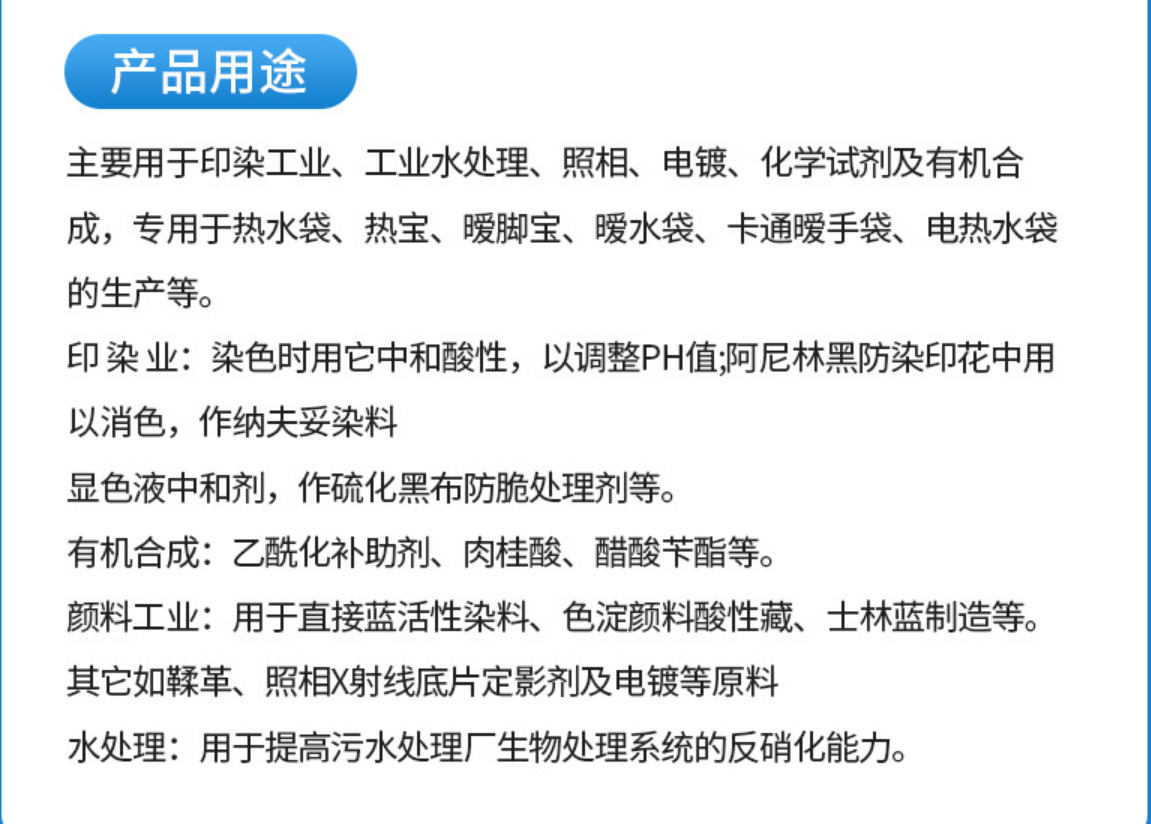 乙酸鈉有機(jī)物使用技術(shù)指標(biāo)