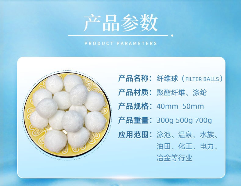 纖維球填料具有彈性效果好、濾速快、空隙大、截污容量大、工作周期長、過濾效果好、水頭損失小等優(yōu)點。適應(yīng)于各種水質(zhì)的過濾和精濾。